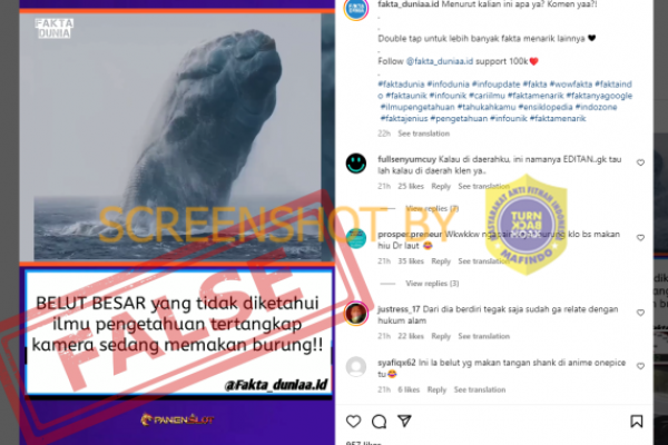 Informasi menyesatkan tentang belut besar memakan burung. Foto: turnbackhoax
