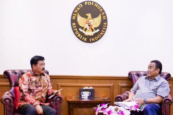 JAKARTA - Wakil Ketua DPR RI Koordinator Bidang Industri dan Pembangunan (Korinbang), Rachmad Gobel bertemu Menko Polhukam Hadi Tjahjanto untuk membahas pemberian gelar pahlawan nasional untuk HB Jassin, di kantor Menko Polhukam, Jakarta, Selasa, (25/6/2024).