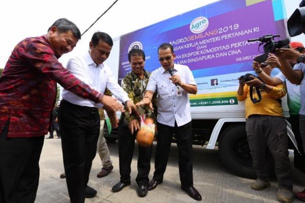 Menteri Pertanian, Andi Amran Sulaima saat melepas ekspor kentang di lapangan GOR Ciateul, Garut pada Kamis (21/3).