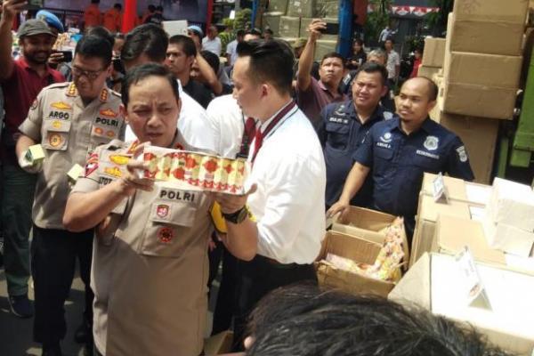 “Barang bukti 8 unit kendaraan truk besar jenis fuso yang didalamnya berisi 1.024.193 pieces kosmetik dan obat-obatan berbagai jenis dan merek, 4.350 bungkus bahan pangan, 774.036 pieces suku cadang berbagai jenis kendaraan, serta 48.641 berbagai barang elektronik,” ungkap Kapolda Metro Jaya Irjen Pol Gatot Eddy Pramono kepada wartawan saat jumpa pers di Polda Metro Jaya, Rabu (14/08/2019).
