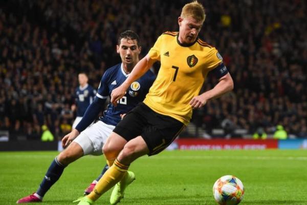 Kevin De Bruyne mengecoh pemain Skotlandia (foto: Marca)