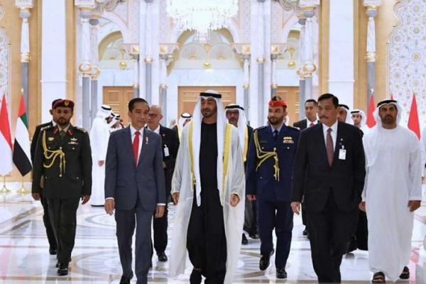 Dalam kunjungan ke UEA, Presiden Joko Widodo disambut dengan hangat oleh Putra Mahkota UEA Mohamed Bin Zayed (MBZ) di Istana Qasr Al Watan, Abu Dhabi, Minggu (13/1/2020), dilanjutkan dengan sejumlah pembicaraan kerja sama.