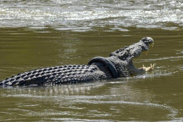 Buaya berkalung ban di Teluk Palu, Sulawesi Tengah