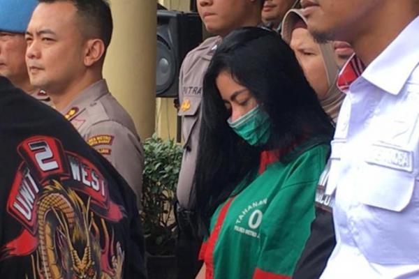 Tersangka artis Vitalia Sesha kenakan baju tahanan.