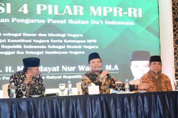 Wakil Ketua MPR Hidayat Nur Wahid sosialisasi Empat Pilar di hadapan anggota IKADI, Minggu (8/3/2020)