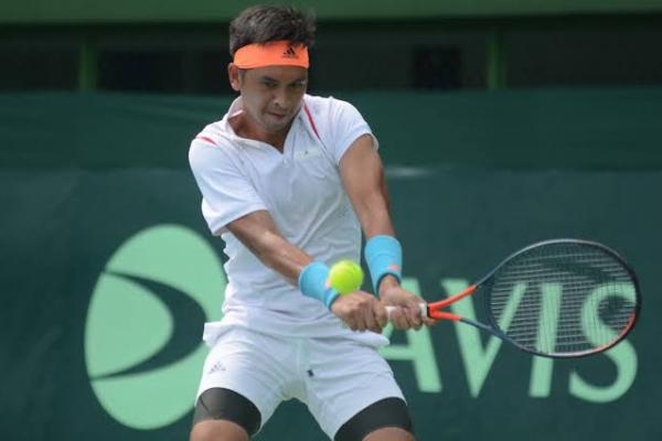 Petenis Indonesia Christopher Rungkat saat berlaga di Piala Davis 2020. Foto: skor.id
