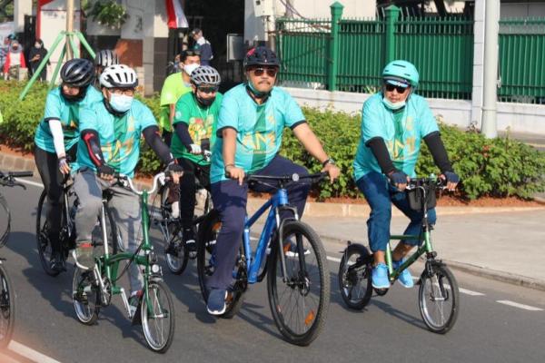 INFO MPR - Pada hari Minggu, 26 Juli 2020, di halaman utama Komplek Gedung MPR/DPR RI, Senayan, Jakarta, berkumpul 115 penggemar olahraga sepeda. Mereka datang dari Jakarta, Bogor, Tangerang, dan kota serta daerah lainnya. Mereka berkumpul di sana sejak pukul 06.00 WIB untuk mengikuti ‘Gowes To Nation’.