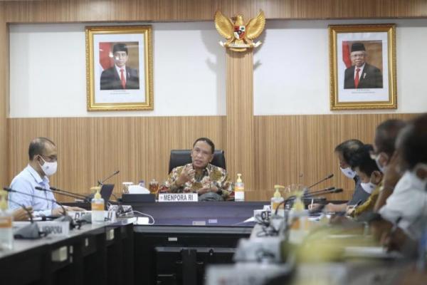 Katakini.com - Menteri Pemuda dan Olahraga Republik Indonesia (Menpora RI) Zainudin Amali memimpin rapat agenda jelang penyelenggaraan Hari Olahraga Nasional (Haornas) 2020 di Kantor Kemenpora, Selasa (18/8).