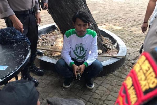 Salah satu peserta aksi yang ditangkap membawa ketapel.