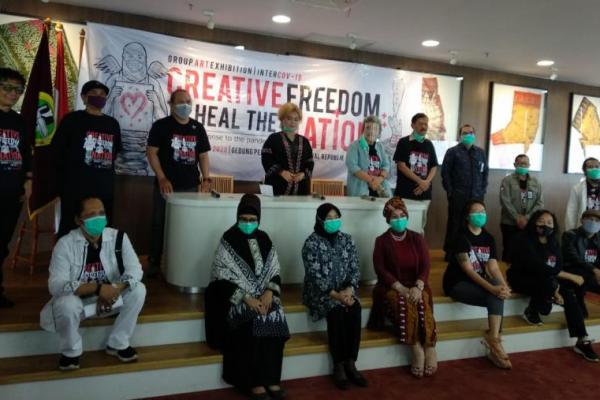 Jakarta, katakini.com - Sekitar 200 lebih karya seni meliputi hasil seni lukis, seni grafis, dan seni patung, foto digital dan lain-lain ikut meriahkan Pameran Seni Rupa dari Kelompok InterCov-19 bertema Creative Freedom to The Heal the Nation (Artists Respond To Pandemic), yang berlangsung di Perpustakaan Nasional (Perpusnas).
