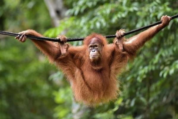 orangutan endemik Indonesia tersebut masuk dalam daftar merah atau sangat terancam punah oleh International Union for Conservation of Nature and Natural Resources (IUCN).(Anadolu Agency)