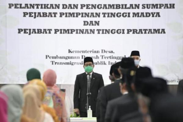 Katakini.com - Menteri Desa, Pembangunan Daerah Tertinggal dan Transmigrasi Abdul Halim Iskandar melantik Pejabat Pimpinan Tinggi Madya dan Pratama di Operasional Room Kantor Kalibata, Senin (4/1/2021) siang.
