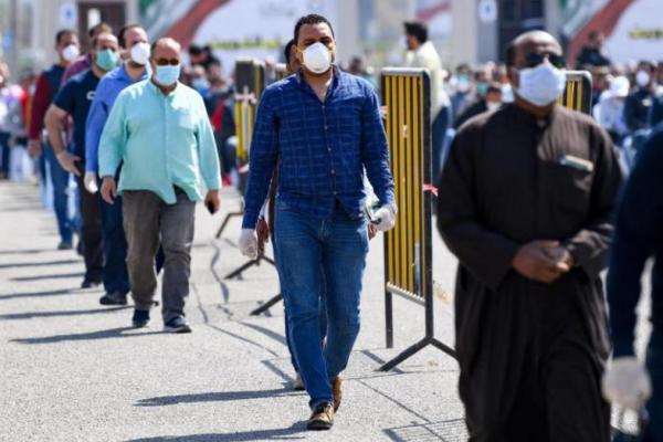 Pekerja di Kuwait mengantre tes Covid-19 (foto Republika)