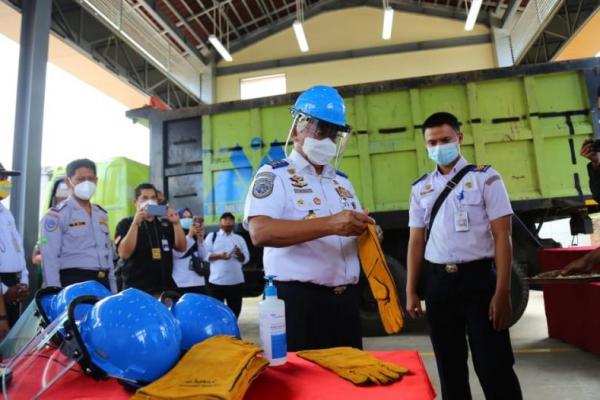 Direktur Jenderal Perhubungan Darat Budi Setiyadi bersiap memotong truk ODOL di Merak, Banten, Senin (15/3/2021).