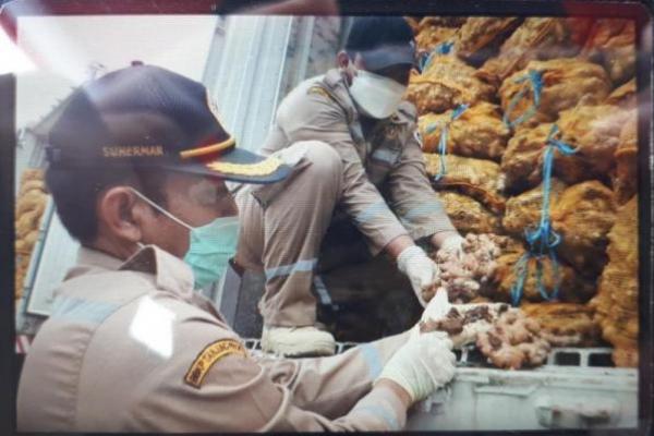 katakini.com - Badan Karantina Pertanian, Kementerian Pertanian (Kementan) memusnahkan jahe impor asal Myanmar dan Vietnam. Totalnya 108 ton, masing-masing 54 ton dari kedua negara yang termuat dalam empat kontainer.