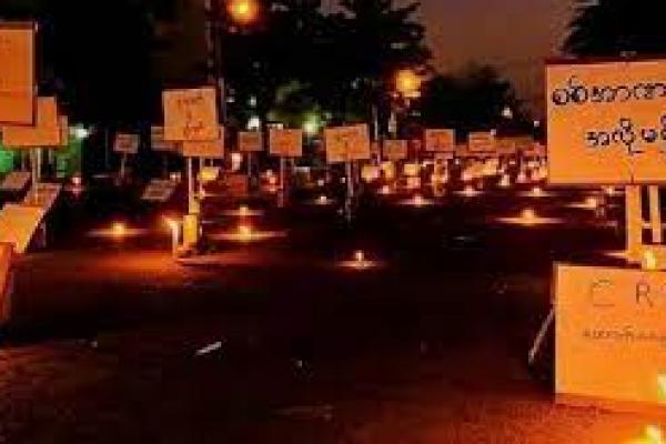 zoom-inlihat foto AS dan Inggris Jatuhkan Sanksi terhadap Perusahaan yang Dikendalikan Militer Myanmar Channel News Asia Demonstran di seluruh Myanmar menggelar aksi menyalakan lilin pada Rabu (24/3/2021) malam. Terbaru, AS dan Inggris Jatuhkan Sanksi terhadap Perusahaan yang Dikendalikan Militer Myanmar.(foto: Channel News Asia)