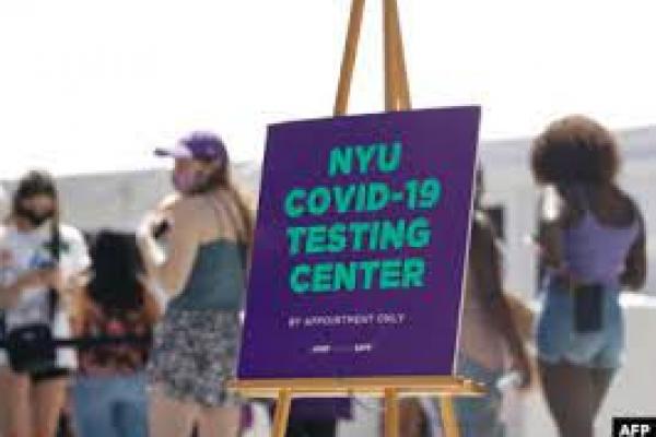Mahasiswa New York University mengantri untuk tesCovid-19 sebelum sekolah dibuka pada 18 Agustus 2020 di New York. (foto: AFP)