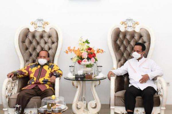 Sjarifuddin Hasan saat bersilaturahmi dengan Plt Gubernur Sulsel Andi Sudirman Sulaiman di Rumah Jabatan Gubernur Sulsel, Makassar, Jumat malam (7/5/2021).