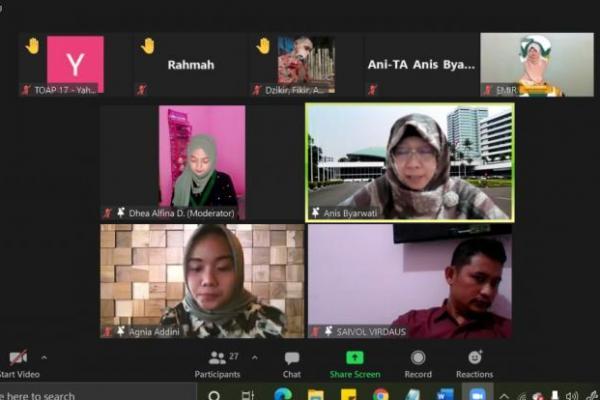 Anggota Komisi XI DPR RI dari Fraksi PKS, Anis Byarwati dalam webinar yang diselenggarakan oleh HMI Cabang Tulungagung dengan tema