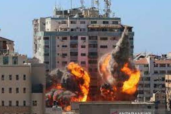 Israel pada Sabtu (15/5) menggempur kompleks menara 12 lantai di Gaza, tempat keberadaan kantor Associated Press (AP) --yang bermarkas di Amerika Serikat-- serta sejumlah media media berita lainnya, menuding bangunan itu juga digunakan oleh kelompok Hamas.(foto: Antara)
