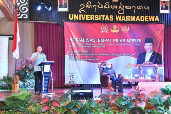 Bamsoet dalam Sosialisasi Empat Pilar MPR RI, di Universitas Warmadewa, Bali, Senin (17/5/21).