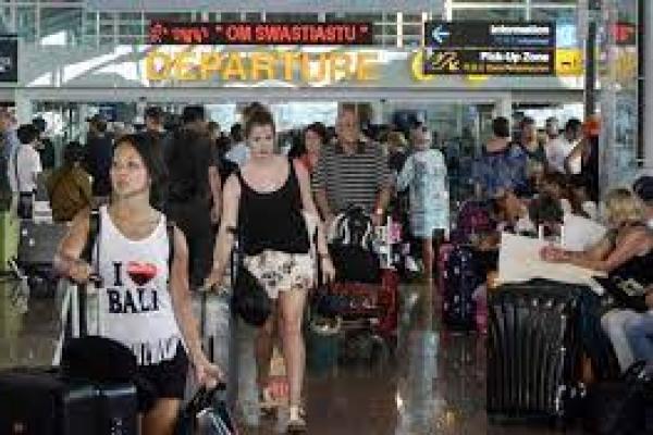 Ilustrasi.Wisatawan mancanegara berada di Terminal Internasional Bandara Internasional I Gusti Ngurah Rai, Badung, Bali, Jumat (16/3/2018). (foto: Antara)
