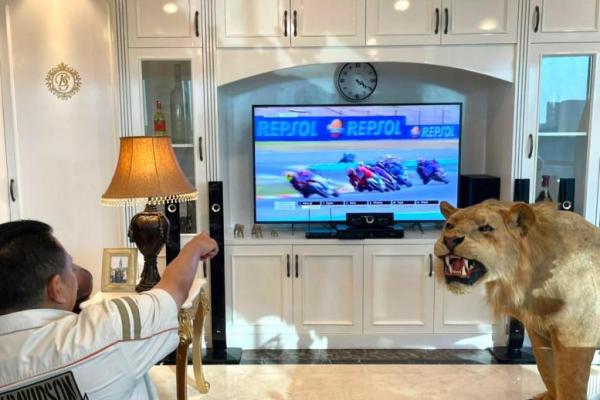 Ketua Umum Ikatan Motor Indonesia (IMI) Bambang Soesatyo saat menyaksikan melalui televisi