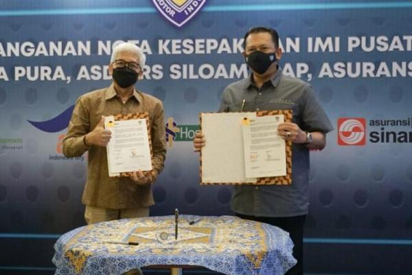 Jakarta, Katakini.com- Ketua Umum Ikatan Motor Indonesia (IMI) Bambang Soesatyo bersama Direktur PT Siloam Internasional Hospitals (Siloam Hospitals Group) Anang Prayudi menandatangani Nota Kesepahaman antara IMI dengan PT Siloam Internasional Hospitals. Melalui kerjasama ini, para pemegang kartu IMI mendapatkan pelayanan dan diskon khusus dari pelayanan kesehatan serta medis atas sarana, fasilitas serta kapasitas dari 39 Rumah Sakit Siloam yang tersebar di berbagai daerah.