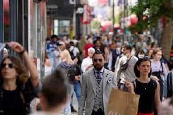 Para pejalan kaki, sedang berjalan melewati toko-toko di Oxford Street, di pusat kota London, pada 7 Juni 2021. (foto: AFP/ investor.id)
