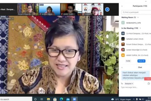 Tangkapan layar Wakil Ketua MPR RI, Lestari Moerdijat saat membuka diskusi daring bertema Kesetaraan Gender Sebagai Bagian dari Cita-Cita Pembangunan Berkelanjutan, yang digelar oleh Forum Diskusi Denpasar 12, Rabu (4/8)