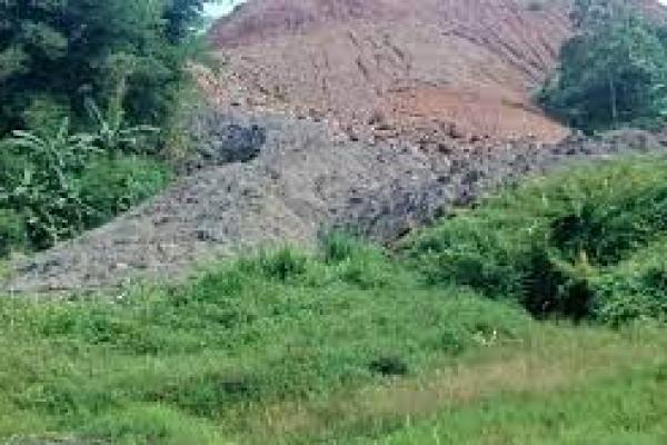 Timbunan limbah proyek jalur Kereta Cepat Jakarta-Bandung di area persawahan daerah Walini, Jawa Barat, Minggu (9/2/2020). (foto: Walhi Jabar/kbr.id)