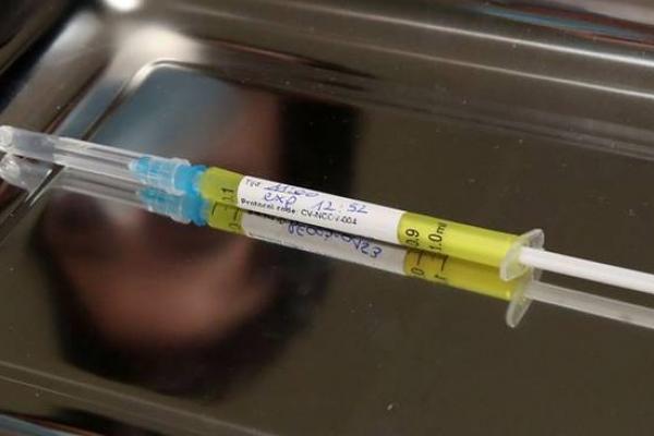 Dosis vaksin CureVac atau plasebo terlihat selama penelitian oleh perusahaan biotek Jerman CureVac sebagai bagian dari pengujian vaksin baru terhadap penyakit virus corona (COVID-19), di Brussels, Belgia, pada 2 Maret 2021. ( Foto: Reuters/Yves Herman)