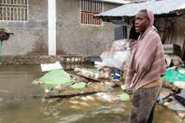 Seorang pemuda berdiri di luar deretan bangunan yang hancur oleh gempa berkekuatan 7,2 di Haiti diikuti oleh gelombang badai dari Tropical Depression Grace.(foto: un.org)