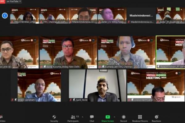 Katakini.com - Sebagai upaya meningkatkan ekspor Indonesia ke India, platform ekspor Madeinindonesia.com bekerjasama dengan KBRI New Delhi dan ITPC Chennai menyelenggarakan pertemuan bisnis secara daring (virtual business meeting) yang dihadiri produsen tanah air dan pembeli potensial dari India.