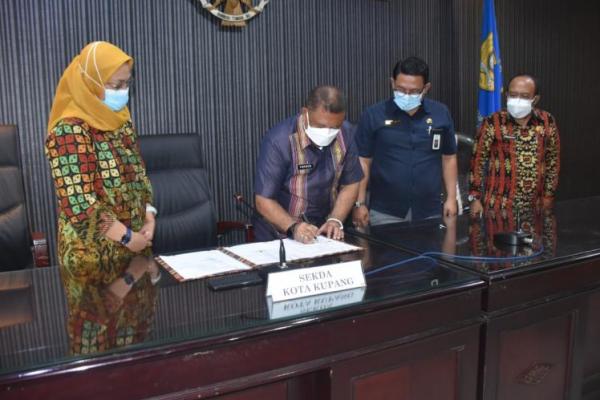 Penandatanganan MoU oleh Sekretaris Daerah Kota Kupang, Fahrensy Priestley Funay, SE, MSi, mewakili Pemerintah Kota Kupang dan Kepala BBTKLPP Surabaya, Rosidi Roslan bertempat di ruang rapat Garuda Balai Kota Kupang, (9/9/2021).