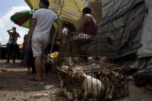 Ilustrasi. Anjing yang diperjualbelikan untuk dipotong di pasar Yulin, China (foto: Humane Society International/AFP/ detik.com)