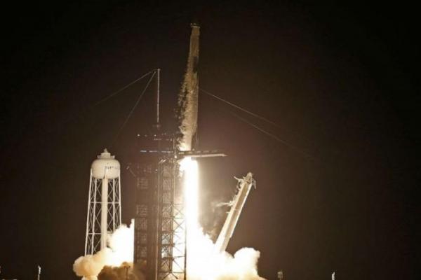 Roket SpaceX Falcon 9, dengan kapsul Crew Dragon, diluncurkan membawa empat astronot dalam misi awak komersial NASA di Kennedy Space Center di Cape Canaveral. Foto: ABC News