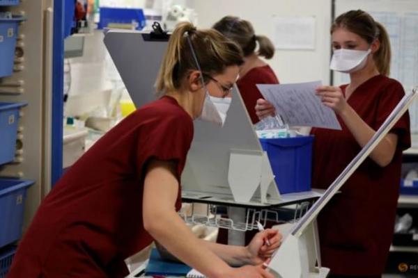 Pekerja medis bekerja di Unit Perawatan Intensif (ICU) tempat pasien yang menderita penyakit coronavirus (COVID-19) dirawat di rumah sakit Cambrai, Prancis, 1 April 2021. REUTERS/Pascal Rossignol
