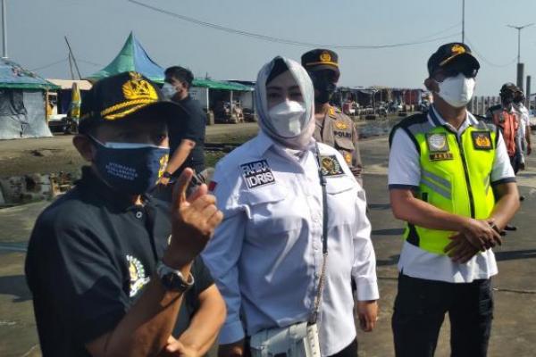 Anggota DPD RI Dapil DKI Jakarta Fahira Idris (tengah bersama Kepala KSU Tanjung Priok Andi Hartono (kiri) di Pelabuhan Kali Adem, Muara Angke, Jakarta Utara.