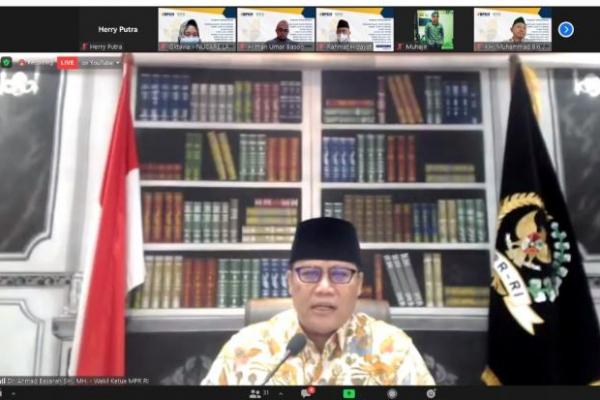 Wakil Ketua MPR yang juga menjabat Wakil Ketua Pengurus Pusat Lembaga Amil Zakat, Infak dan Sedekah Nahdlatul Ulama (PP LAZISNU) PBNU, Ahmad Basarah saat memberikan sambutan secara virtual pada acara diresmikannya ruang isolasi Covid-19 di tujuh pondok pesantren NU dari berbagai daerah, Jumat (24/9/21).(foto: Humas MPR)