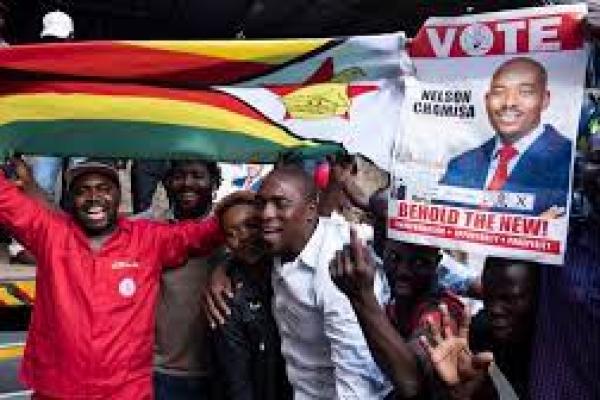 File: Pendukung pemimpin MDC (Gerakan untuk Aliansi Perubahan Demokratis) dan kandidat presiden oposisi bersorak di luar markas MDC di Harare, pada 31 Juli 2018.(foto: voazimbabwe.com)