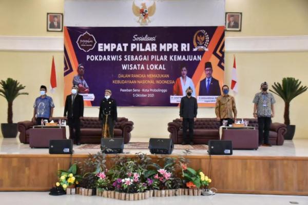 Lestari Moerdijat hadir secara virtual sebagai narasumber utama acara ‘Sosialisasi Empat Pilar MPR RI’ Kerjasama MPR dengan Kelompok Sadar Wisata (Pokdarwis), di aula Gedung Paseban Sena, Kecamatan Mayangan, Kota Probolinggo, Jawa Timur, Selasa (5/10/2021).