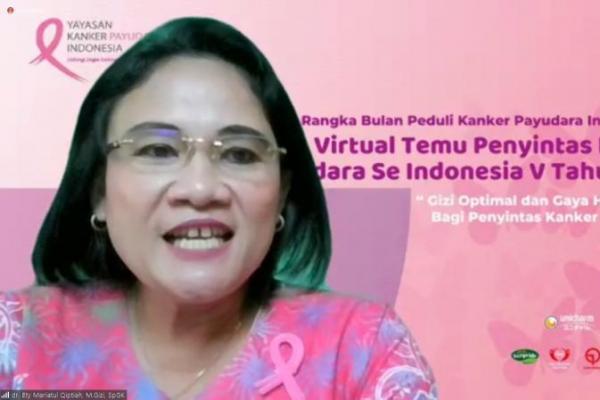 Jakarta, katakini.com - Pemenuhan nutrisi bagi pasien maupun penyintas kanker payudara merupakan hal yang penting dilakukan. Hal ini disampaikan oleh Ahli Gizi Klinis RSPAD Gatot Subroto, dr. Ety Maryatul Qiptiah, Sp.GK dalam kegiatan `Virtual Temu Penyintas Kanker Payudara ke-5`, yang digelar oleh Yayasan Kanker Payudara Indonesia (YKPI) pada Sabtu (9/10).