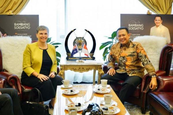 Bamsoet saat menerima Duta Besar Australia untuk Indonesia H.E. Ms. Penny Williams, di Ruang Kerja Ketua MPR RI, di Jakarta, Senin (11/10/21).(foto: Humas MPR)