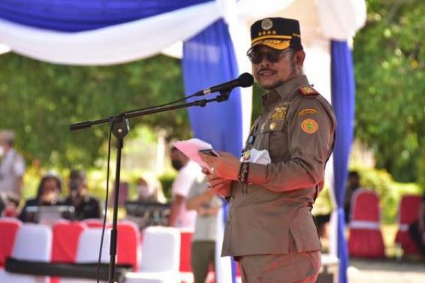 Menteri Pertanian (Mentan), Syahrul Yasin Limpo saat memimpin upacara Hari Karantina Pertanian 2021, Kupang, Nusa Tenggara Timur, Senin (18/10).