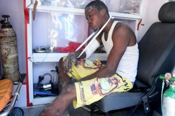 Sebuah gambar dari lokasi keruntuhan menunjukkan satu orang yang telah dirawat karena cedera. (Foto: BBC)