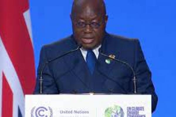 Presiden Ghana, Nana Addo Dankwa Akufo-Addo saat berpidato pada KTT iklim COP26 di Glasgow, Skotlandia (foto: 1seo.info)
