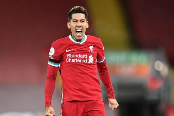 Roberto Firmino melakukan selebrasi setelah mencetak gol yang menentukan pada lanjutan Liga Inggris Kamis dini hari (17/12/2020)