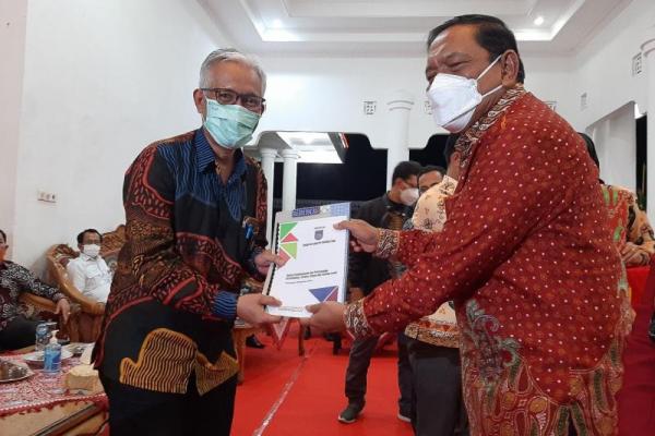 Bupati Bengkulu Utara, Mian menyrahkan proposal bantuan kepada Direktur Fasilitasi Penataan Persebaran Penduduk di Kawasan Transmigrasi, Anto Pribadi. (Foto: Ist)