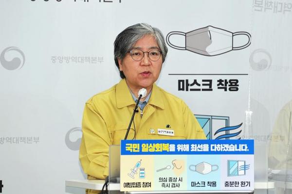 Jeong Eun-kyeong, kepala Badan Pengendalian dan Pencegahan Penyakit Korea, berbicara dalam konferensi pers yang disiarkan televisi Senin di kantor pusat agensi di Osong, Provinsi Chungcheong Utara. (Foto: The Korea Herald)